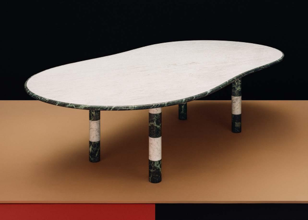 가장 주목받는 제품은 영국 디자이너 듀오 바버 & 오스거비가 디자인한 ‘스타디움 데르메스(Stadium d'Hermès)’ 테이블이다. 말 등의 실루엣과 경마장 구조에서 영감을 받은 8자형 상판에 마블 마케트리 기법을 적용, 베나토 카라라 대리석의 부드러움과 베르데 알피 그린의 강렬한 대비를 완성했다.